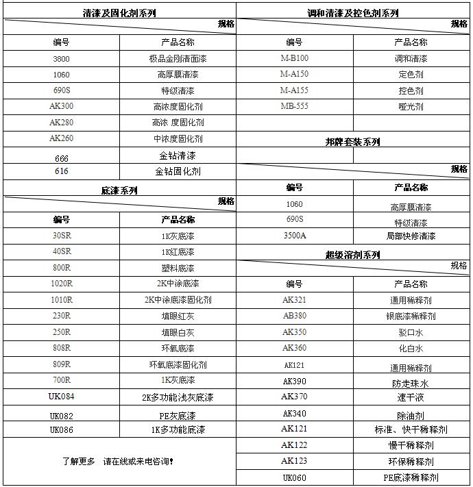 汽车油漆所要用到的配套辅料产品!