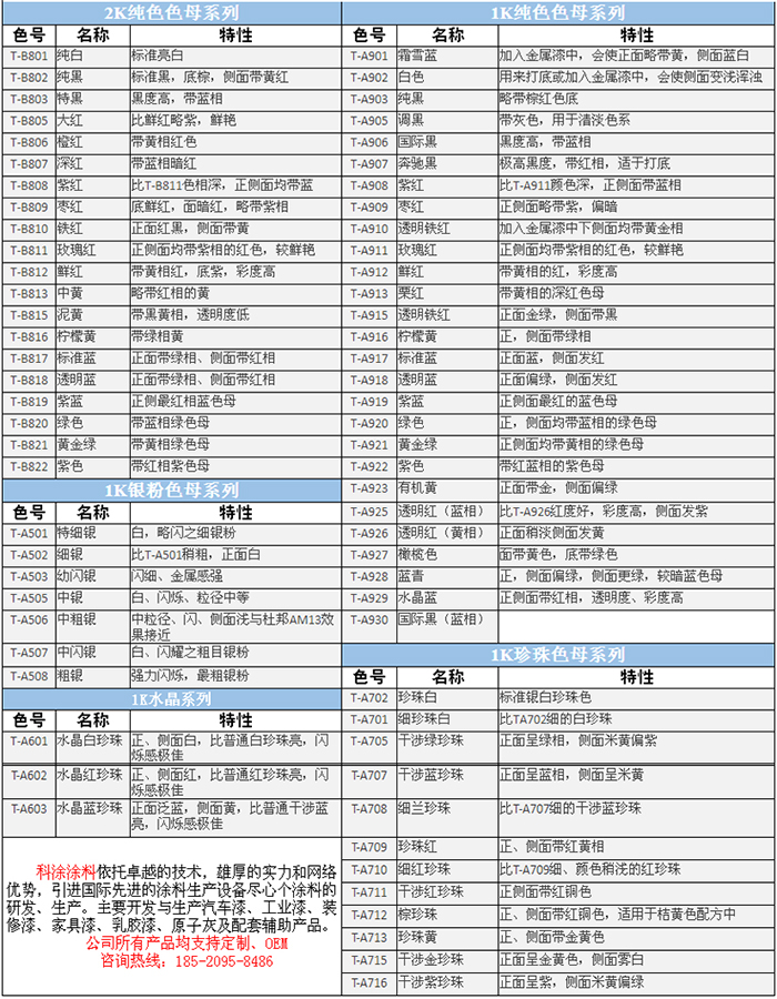 汽车漆色母主要分有1K和2K系列色母